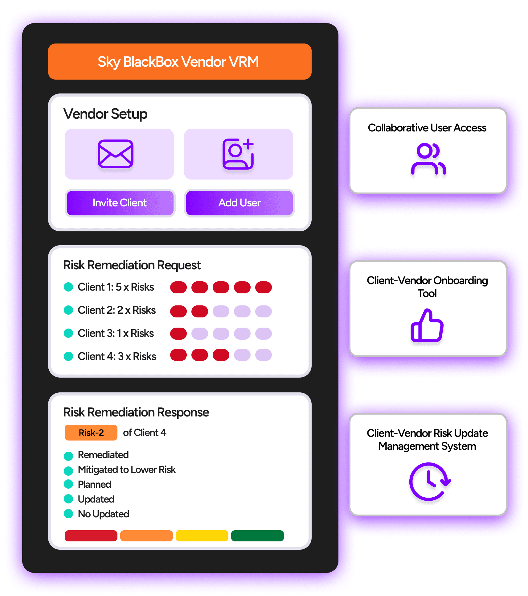 Sky BlackBox is AI-empowered Vendor Risk Management that maximizes security while minimizing effort. With a suite of three integrated apps, it addresses VRM challenges for clients, vendors, and service providers. Offering 470x more accuracy, 6x lower operational costs, and 9x faster results compared to traditional methods.